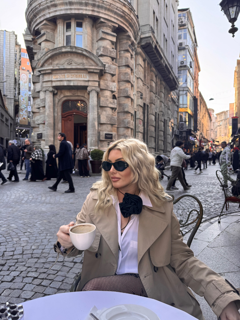 UZUN KOLLU KEMER DETAYLI YANLARI CEPLİ İÇİ ASTARLI ÖNÜ DÜĞMELİ VE KUŞAKLI